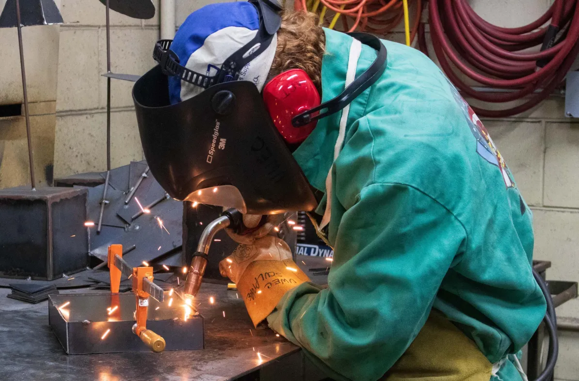 While there is a metals area on campus, the university currently doesn’t have the equipment nor the space necessary for bigger welding projects, Marie says. So, she’s working to build connections with the local business community to see how it might help her create new welding opportunities for her students.