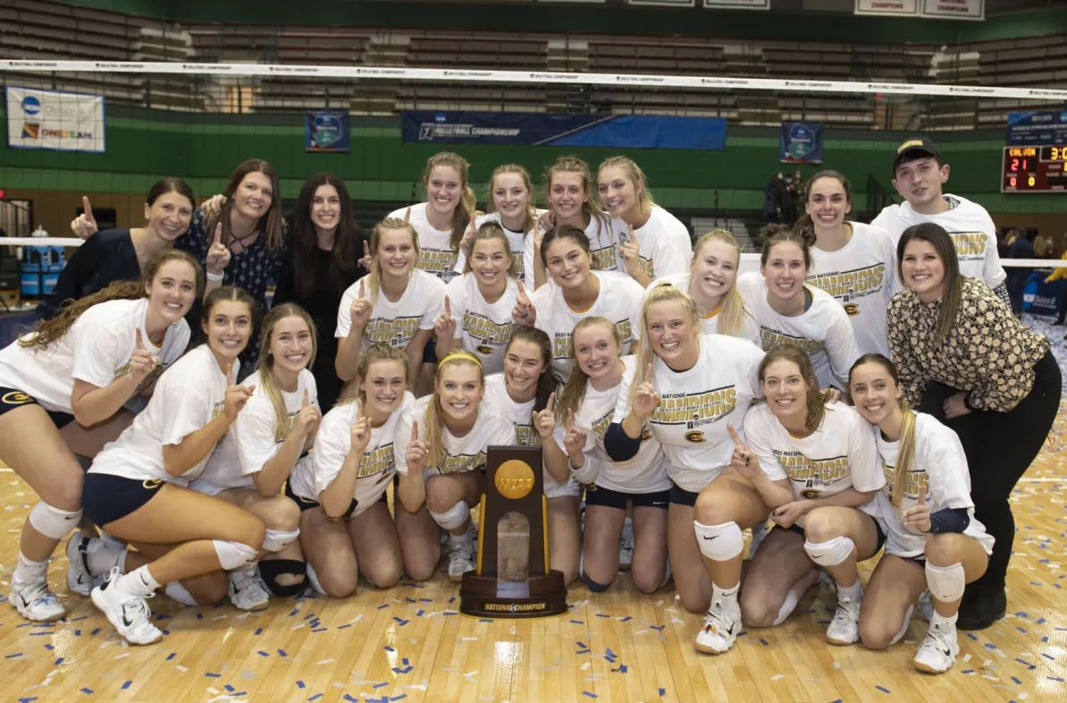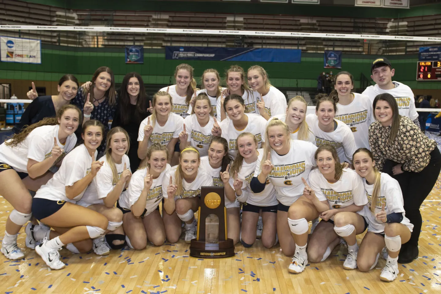 The Blugolds won the NCAA Division III title at Washington University in St. Louis, Missouri, on Nov. 20 with a 3-0 sweep of Calvin University. The fourth-seeded Blugolds had defeated Juniata College and Tufts University the previous two days to advance to the championship match.