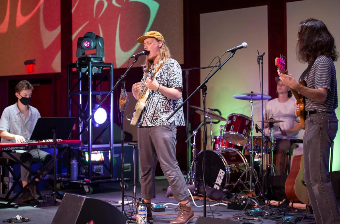 The concert also gave the band a chance to showcase the new songs Stein wrote during the pandemic, songs he says are “more edgy because of COVID and the loneliness people feel.” They also better reflect and define the kind of music he hopes the band will play in the future, says Stein, a music composition and mathematics major from Moorhead, Minnesota, who will graduate in May.