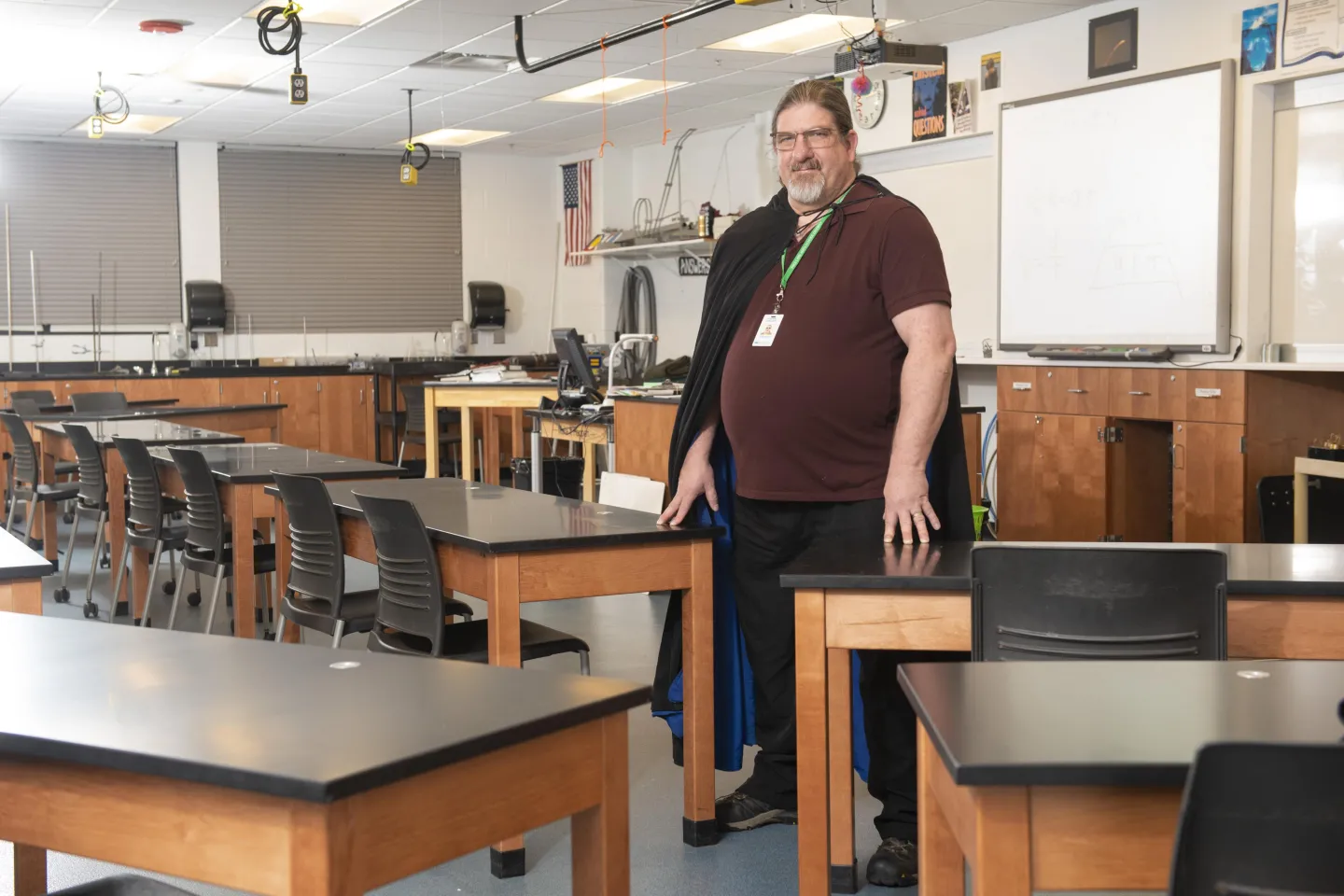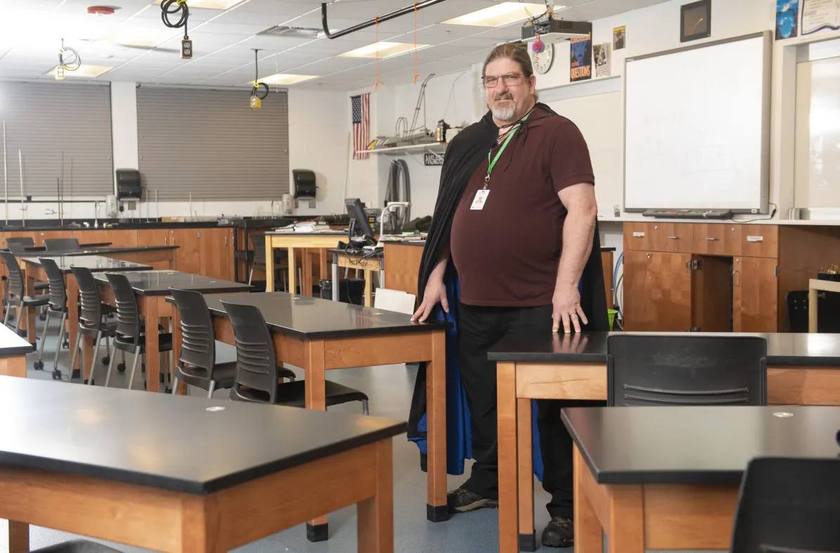 “Here’s someone who doesn’t need to be going to college,” Hendrickson says. “He has a family and a successful business. What is this larger-than-life figure doing here in his flowing cape? Oh, yeah, he loves physics, he’s good at it and he’s a great people person. He works hard, puts in the necessary time and effort, has great time-management skills and really enjoys helping others.”