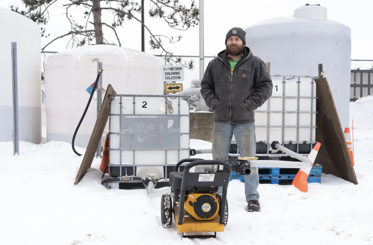“We can use brine in two ways,” Turek says. “One is to put the brine on our roads before a snow event, a process called pretreating. This creates a barrier between the road surface and the falling snow, so it does not stick to the pavement as easily. Think of it like putting oil in a frying pan before you cook your food — it prevents a bond from forming and allows us to clear snow and ice more efficiently later.”