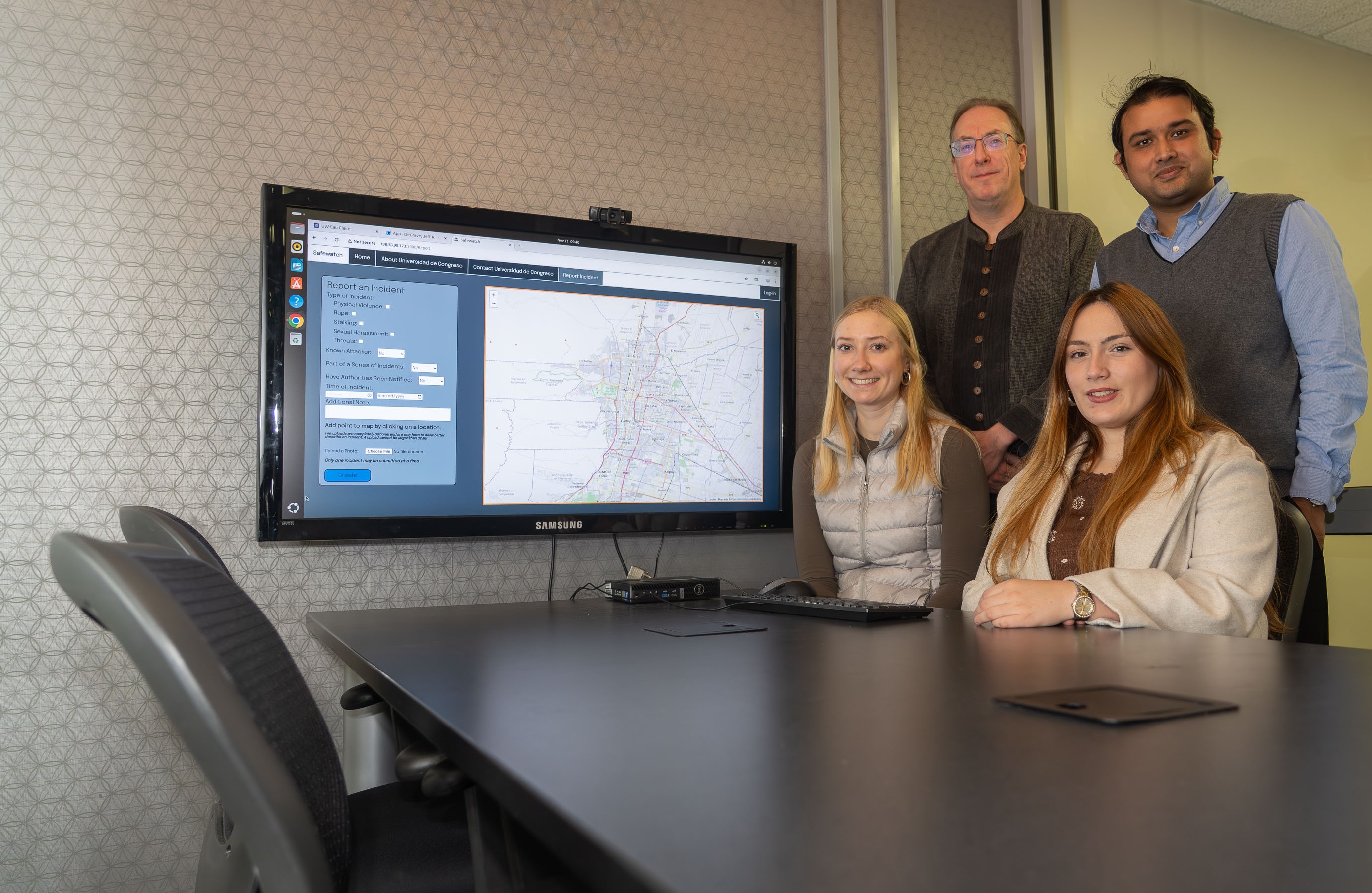 Top image caption: The research team, from left: Senior Avery Dresel, Dr. Jeff DeGrave, junior Rosana Fernandez Vila and Dr. Rahul Gomes.